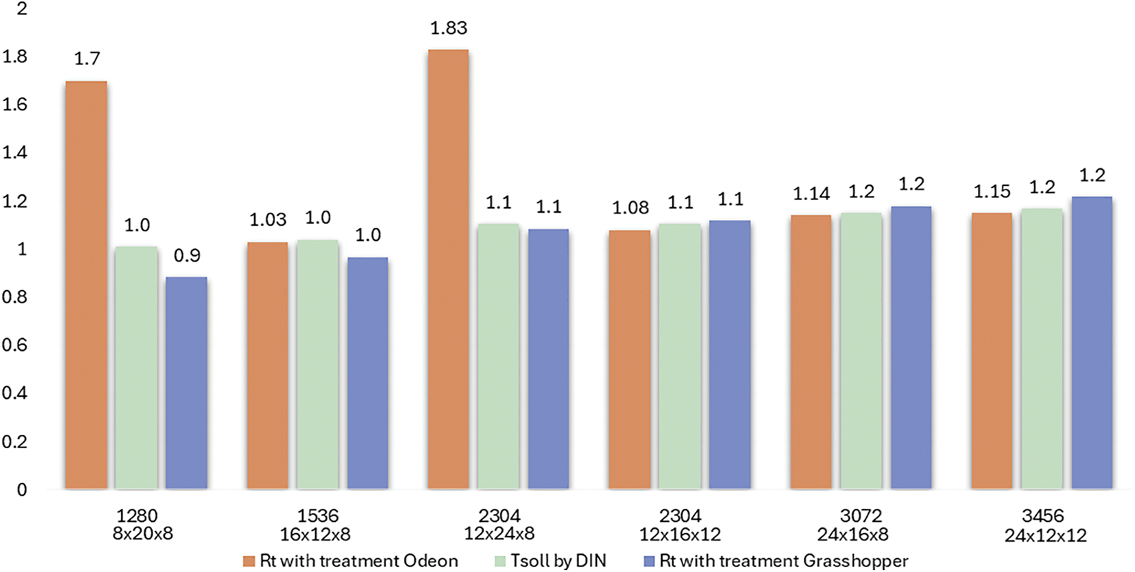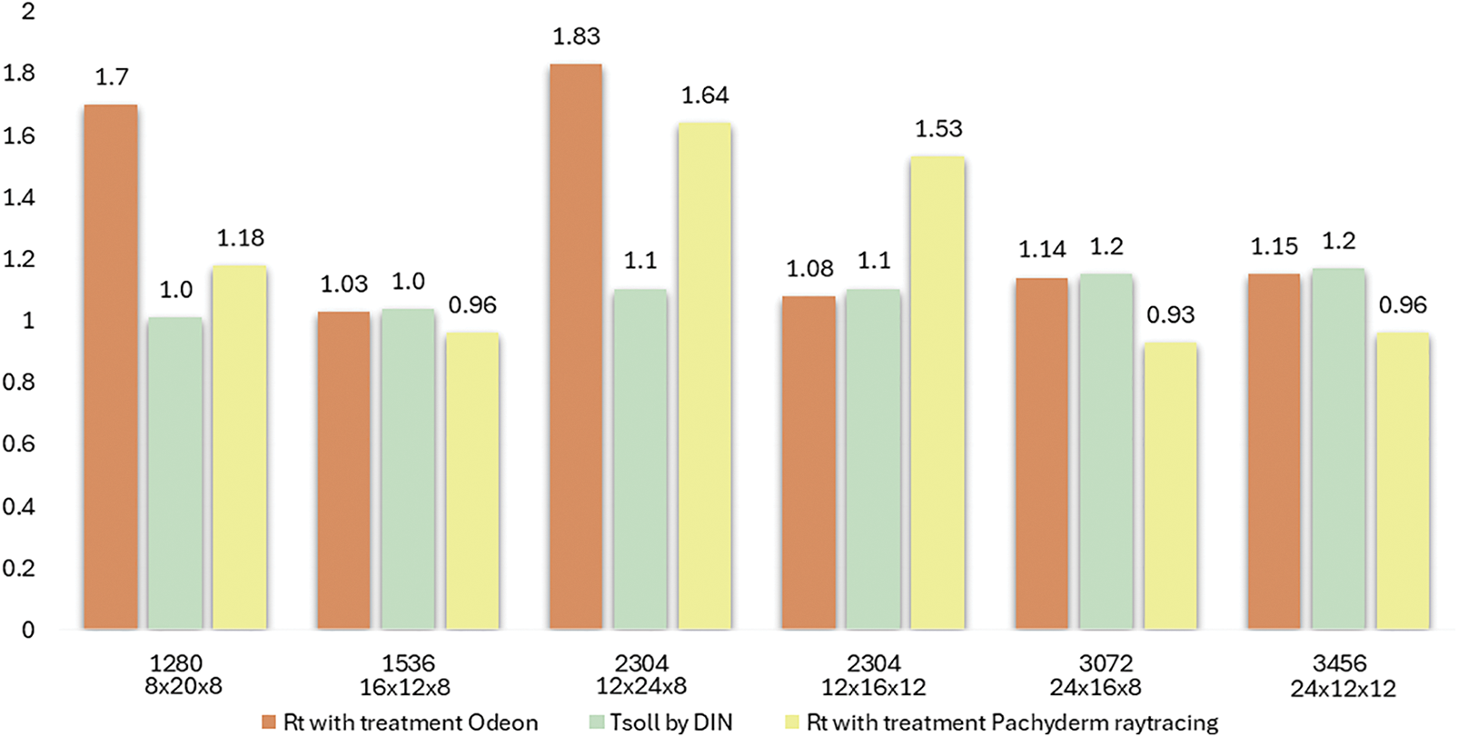 Fig. 10. Grasshopper and Odeon results for RT.
