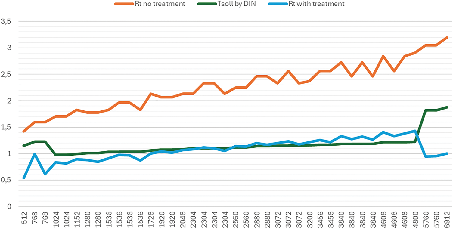 Three different methods for calculating the reverberation time were used in the Grasshopper algorithm (Fig. 2). TSoll, used for the target value from the DIN 18041:2016-03 standard, was calculated using the following formulas: